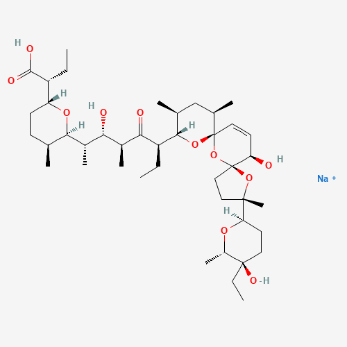 IUPAC名:sodium;(2R)-2-[(2R,5S,6R)-6-[(1S,2S,3S,5R)-5-[(3S,5S,7R,9S,10S,12R,15R)-3-[(2R,5R,6S)-5-ethyl-5-hydroxy-6-methyl-tetrahydropyran-2-yl]-15-hydroxy-3,10,12-trimethyl-4,6,8-trioxadispiro[4.1.57.35]pentadec-13-en-9-yl]-2-hydroxy-1,3-dimethyl-4-oxo-heptyl]-5-methyl-tetrahydropyran-2-yl]butanoic acid