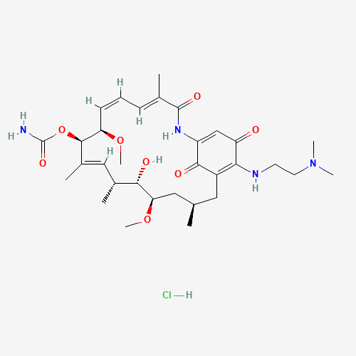 IUPAC名:[(4E,6Z,8R,9R,10E,12R,13S,14R,16R)-19-[2-(dimethylamino)ethylamino]-13-hydroxy-8,14-dimethoxy-4,10,12,16-tetramethyl-3,20,22-trioxo-2-azabicyclo[16.3.1]docosa-1(21),4,6,10,18-pentaen-9-yl] carbamate;hydrochloride