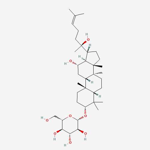 IUPAC名:(2S,3S,4R,5R,6S)-2-[[(3R,5S,8S,9S,10R,12S,13S,14S,17R)-12-hydroxy-17-[(1S)-1-hydroxy-1,5-dimethyl-hex-4-enyl]-4,4,8,10,14-pentamethyl-2,3,5,6,7,9,11,12,13,15,16,17-dodecahydro-1H-cyclopenta[a]phenanthren-3-yl]oxy]-6-(hydroxymethyl)tetrahydropyran-3,4,5-triol