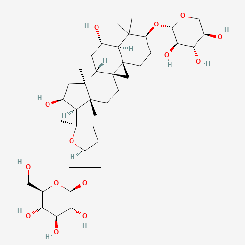 SMILES: CC(=CCCC1(CCC2(C(C1O)CCC3C2(CCC4C3(CCC(C4(C)COC5C(C(C(C(O5)CO)O)O)O)OC6C(C(C(C(O6)CO)O)O)OC7C(C(C(CO7)O)O)O)C)C)C)CO)CO