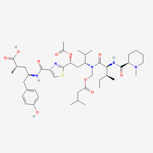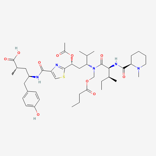 IUPAC名:(2S,4R)-4-[[2-[(1R,3R)-1-acetoxy-3-[butanoyloxymethyl-[(2S,3S)-3-methyl-2-[[(2R)-1-methylpiperidine-2-carbonyl]amino]pentanoyl]amino]-4-methyl-pentyl]thiazole-4-carbonyl]amino]-5-(4-hydroxyphenyl)-2-methyl-pentanoic acid