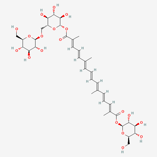 IUPAC名:O1-[(2R,3R,4S,5S,6R)-3,4,5-trihydroxy-6-(hydroxymethyl)tetrahydropyran-2-yl] O16-[(2S,3R,4S,5S,6R)-3,4,5-trihydroxy-6-[[(2R,3R,4S,5S,6R)-3,4,5-trihydroxy-6-(hydroxymethyl)tetrahydropyran-2-yl]oxymethyl]tetrahydropyran-2-yl] (2E,4E,6E,8E,10E,12E,14E)-2,6,11,15-tetramethylhexadeca-2,4,6,8,10,12,14-heptaenedioate