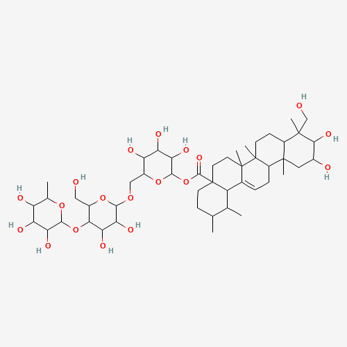 IUPAC名:[6-[[3,4-dihydroxy-6-(hydroxymethyl)-5-(3,4,5-trihydroxy-6-methyl-tetrahydropyran-2-yl)oxy-tetrahydropyran-2-yl]oxymethyl]-3,4,5-trihydroxy-tetrahydropyran-2-yl] 10,11-dihydroxy-9-(hydroxymethyl)-1,2,6a,6b,9,12a-hexamethyl-2,3,4,5,6,6a,7,8,8a,10,11,12,13,14b-tetradecahydro-1H-picene-4a-carboxylate