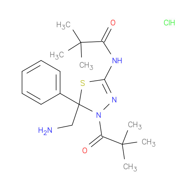 propanamide, N-[5-(aminomethyl)-4-(2,2-dimethyl-1-oxopropyl)-4,5-dihydro-5-phenyl-1,3,4-thiadiazol-2-yl]-2,2-dimethyl-, monohydrochloride