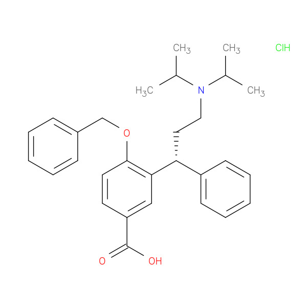 Benzoic acid, 3-[(1R)-3-[bis(1-methylethyl)amino]-1-phenylpropyl]-4-(phenylmethoxy)-, hydrochloride