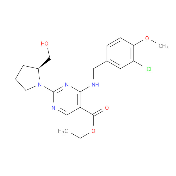 5-Pyrimidinecarboxylic acid, 4-[[(3-chloro-4-methoxyphenyl)methyl]amino]-2-[(2S)-2-(hydroxymethyl)-1-pyrrolidinyl]-, ethyl ester
