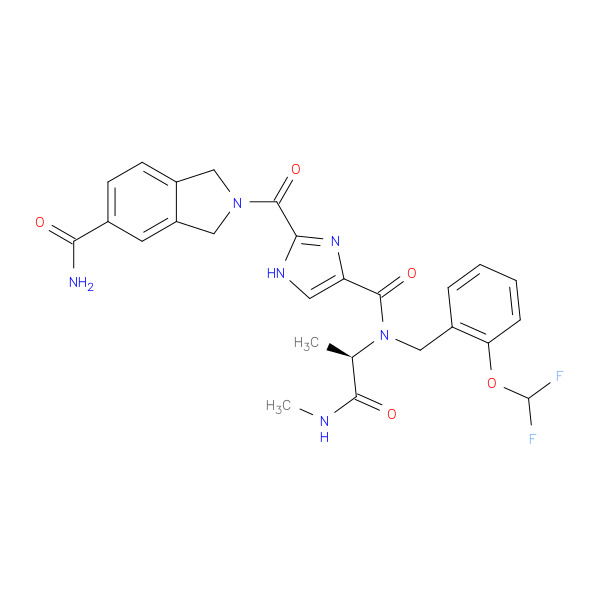 (R)-2-(4-((2-(Difluoromethoxy)benzyl)(1-(methylamino)-1-oxopropan-2-yl)carbamoyl)-1H-imidazole-2-carbonyl)isoindoline-5-carboxamide